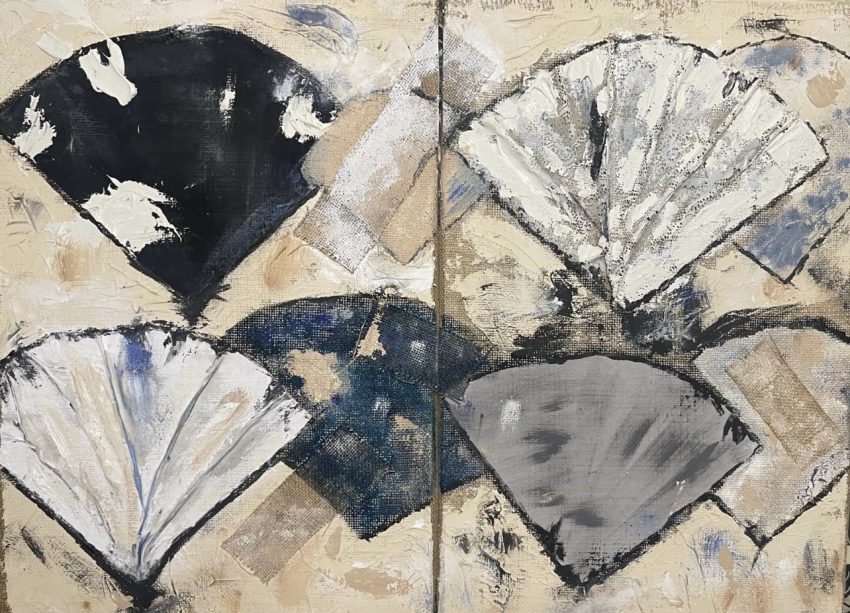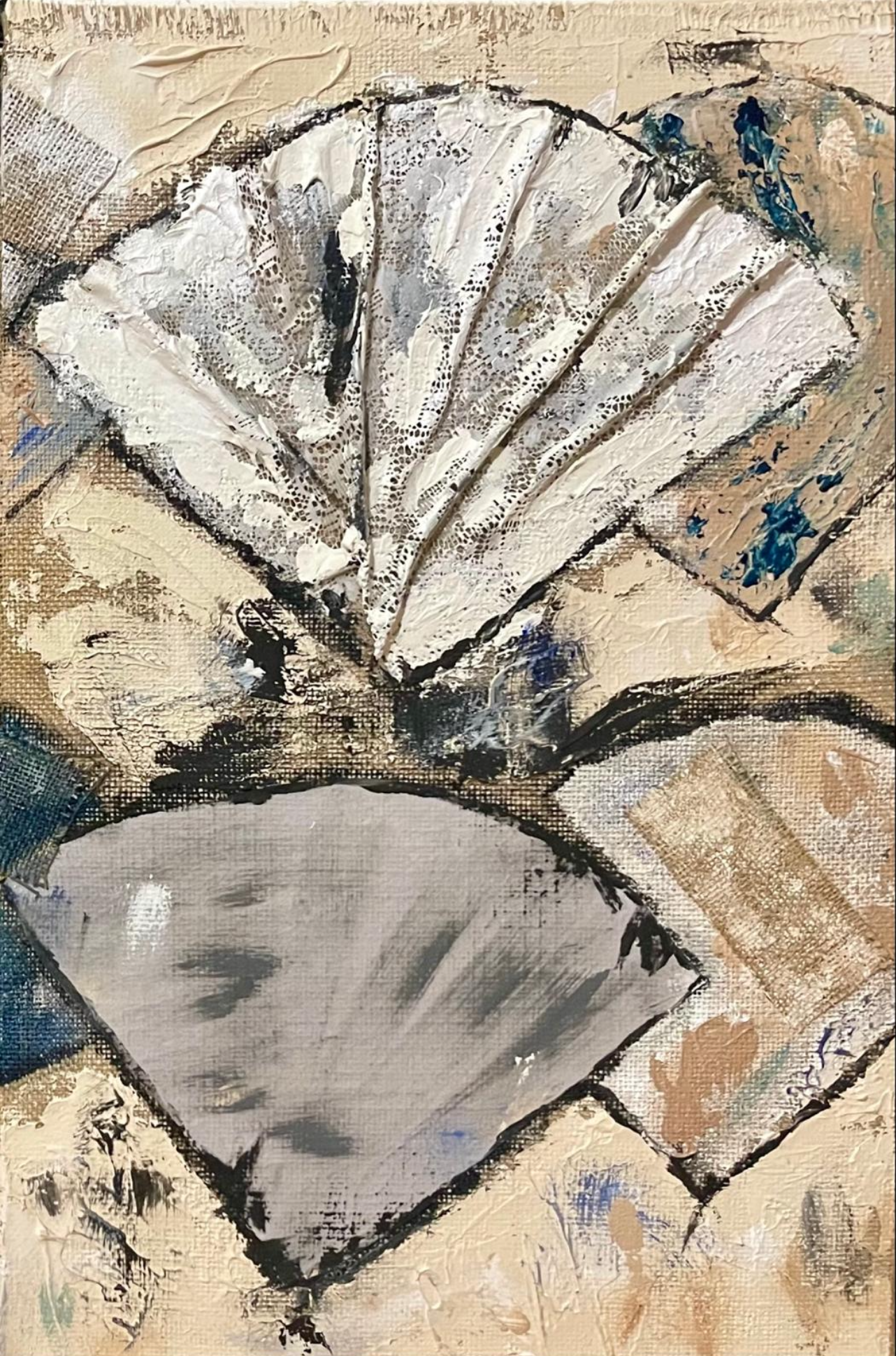 Medidas: 2 cuadros de 60x40cm cada cuadro (se venden juntos) Materiales: elas varios tipos, materia y acrílico sobre tabla